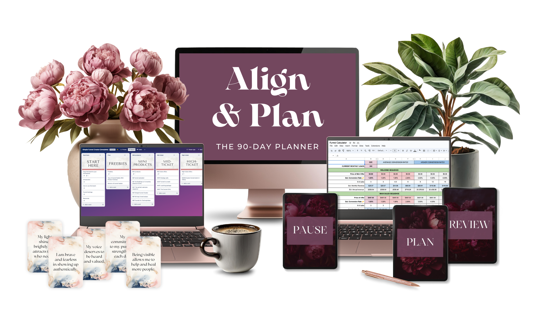 This planner helps you create a 90-day roadmap based on what truly feels aligned with your current stage of life and business. It’s about focusing on what matters most for where you are right now, so you can build a solid foundation and achieve lasting success, one step at a time.